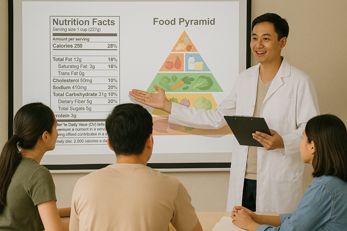 Phương pháp học thực tế: Hướng dẫn cách đọc nhãn thực phẩm, tính toán khẩu phần ăn và ứng dụng phần mềm phân tích dinh dưỡng.